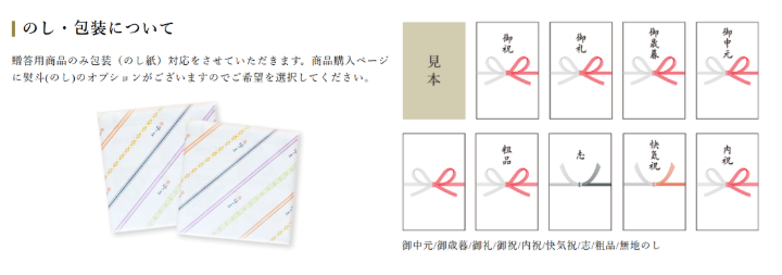 公式オンラインショップなら、ギフトに欠かせないのし対応や丁寧なラッピングにも対応。