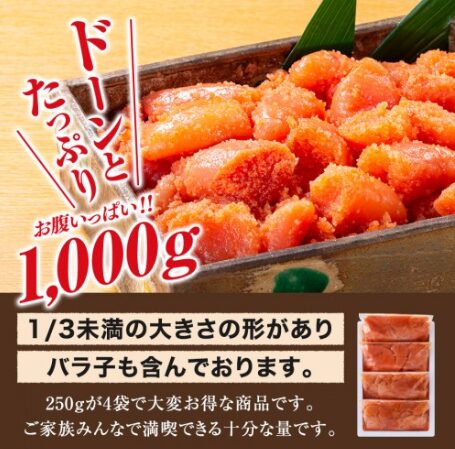【第2位】無着色 辛子めんたい 並切れバラ子250g×4 (合計 1kg) 送料無料