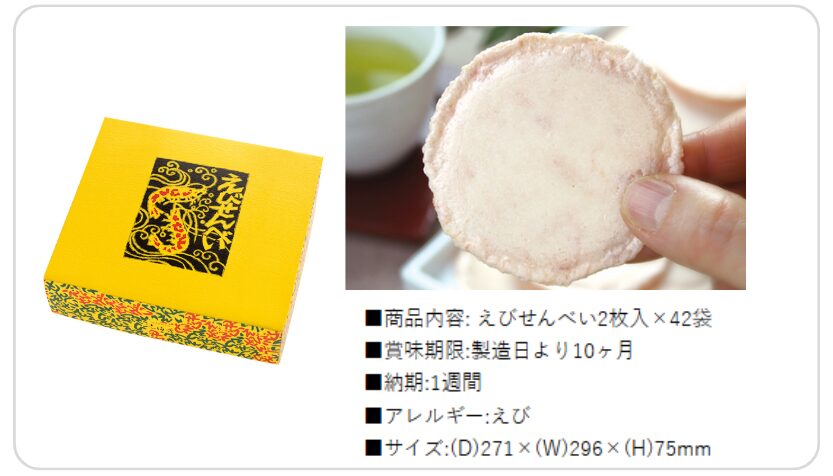 ギフトにする場合、味が受け入れられないのではと不安に思う場合は、事前に「えびせん送りましたよ」と一言入れておくと、想像のえびせんではないビジュアルに驚かれること間違いなしです。