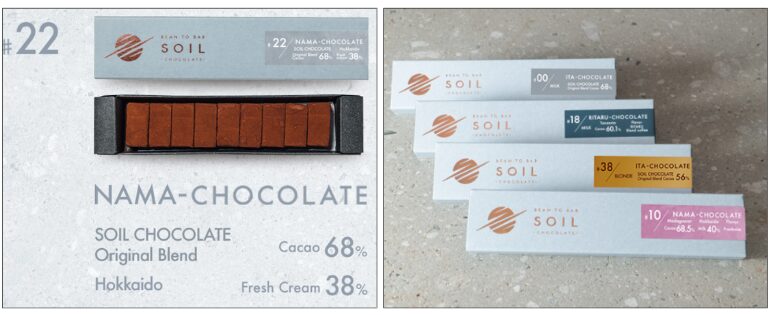 また、生チョコレートの「ソイルブレンド」は、カカオの香りとほろ苦さが際立っており、滑らかな口溶けで、従来のビターチョコとは異なる形で満足できます。