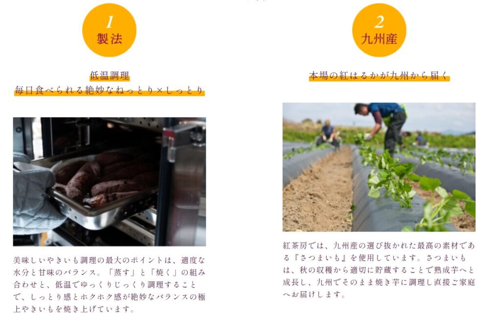 「価格が高い」と感じる主な理由は、紅茶房の焼き芋が畑の選定から熟成、低温調理に至るまで、通常の焼き芋にはない時間と手間をかけて作られているからです。