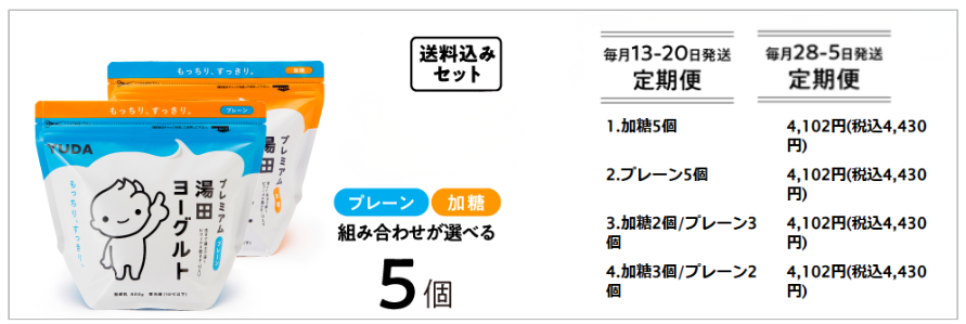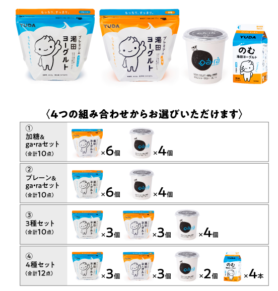 湯田ヨーグルト製品を4つの組み合わせから選べる満足セットです。